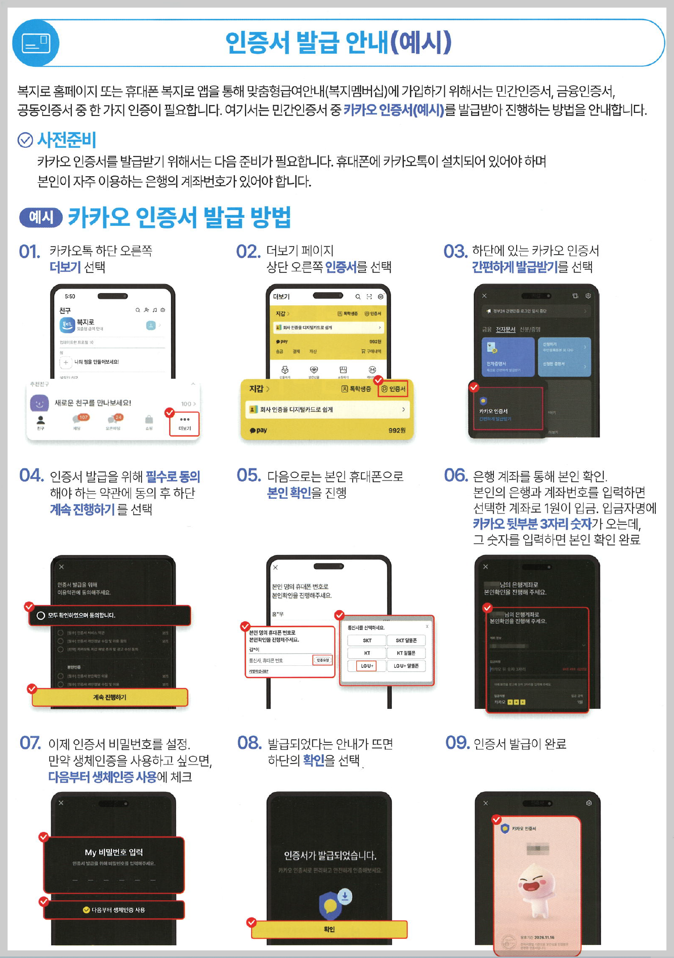 인증서 발급 안내 (카카오 인증서 예시)
