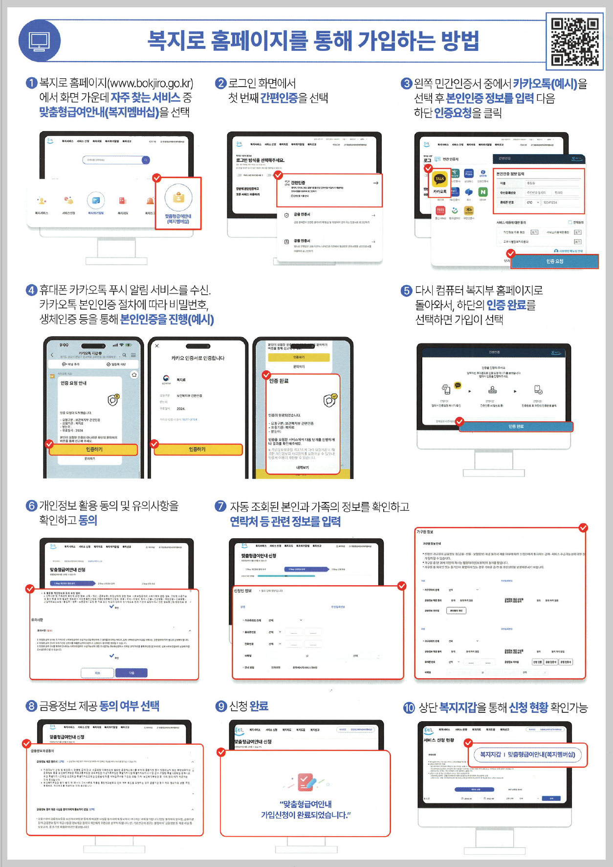 - 가입 후 복지로 사이트 또는 복지앱에서 다양한 혜택 및 안내 확인 가능