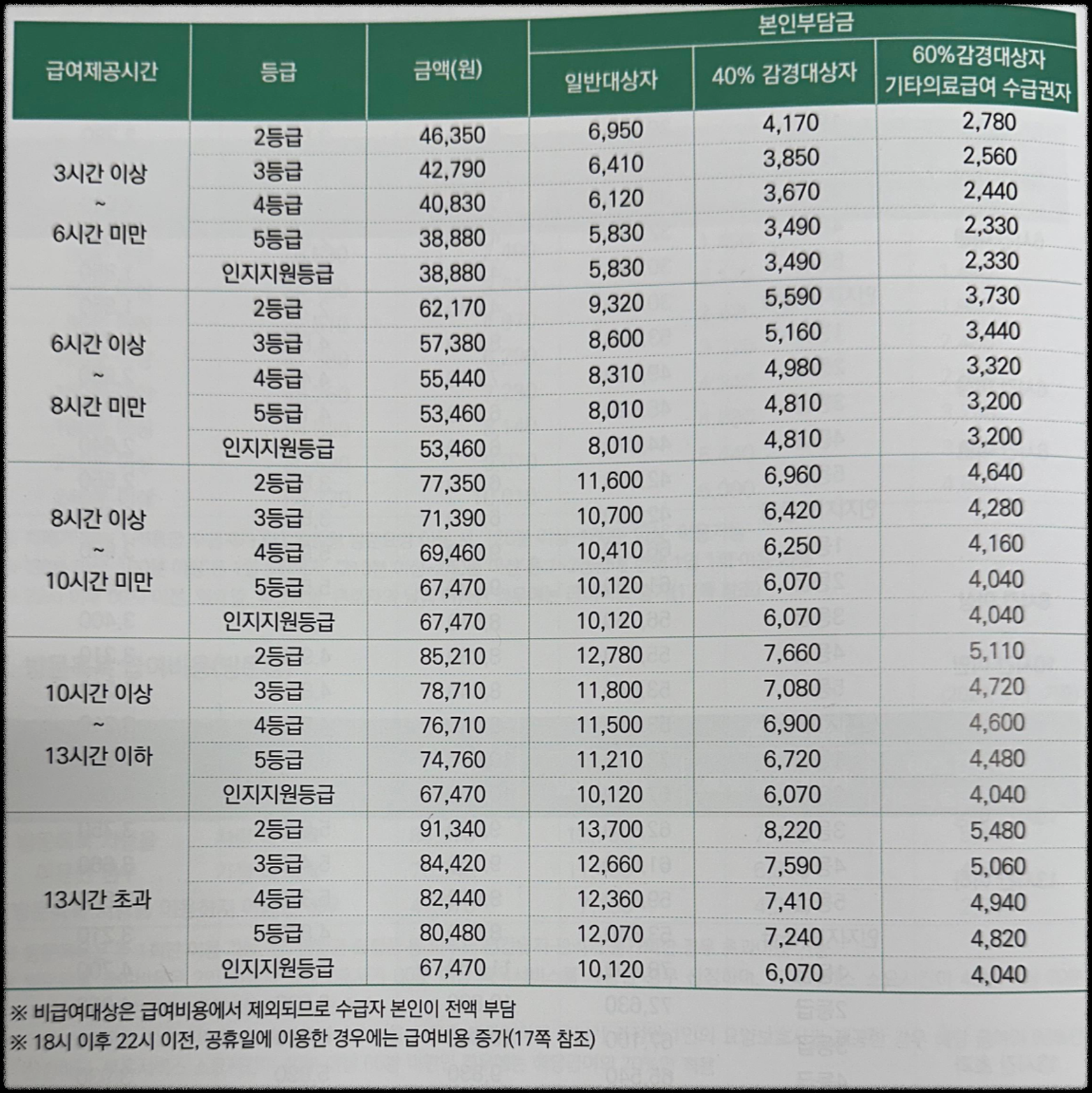 특히 등급에 따라 얼마까지 지원받을 수 있는지, 내가 부담해야 할 본인부담금은 얼마인지,