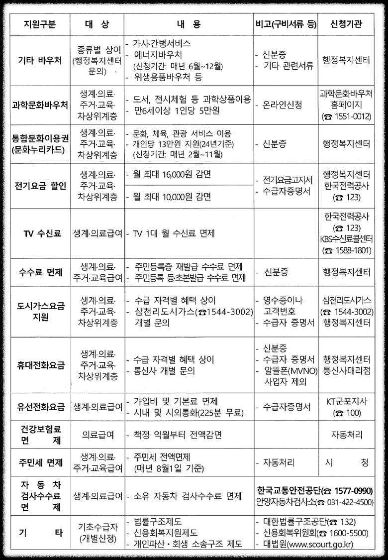 기초 주거 급여는 대상자로 결정된다면,  아래의 리스트 중 타법에 의한 지원내용에서