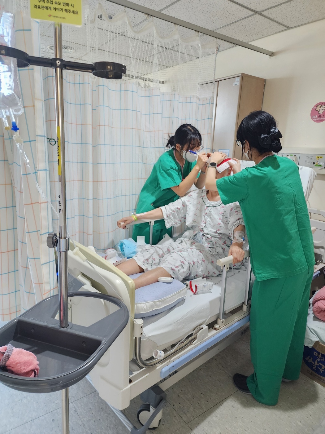- 수술 부위 압박 금지: 머리 또는 복부에 압력이 가지 않도록 주의