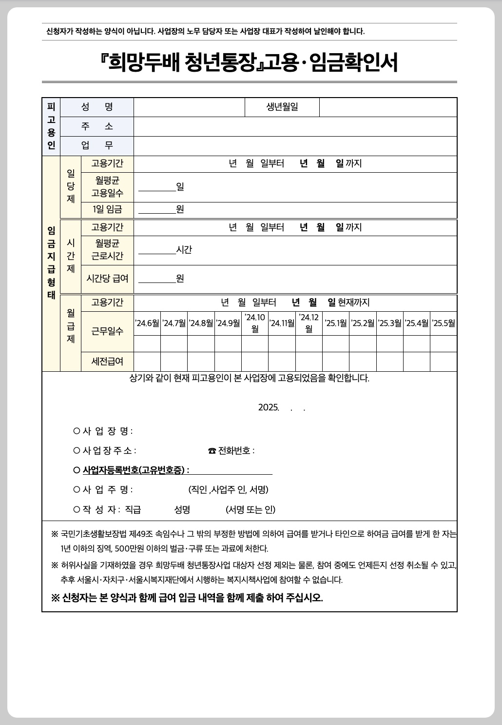 - 희망 두 배 청년통장 고용금확인서 양식. hwp